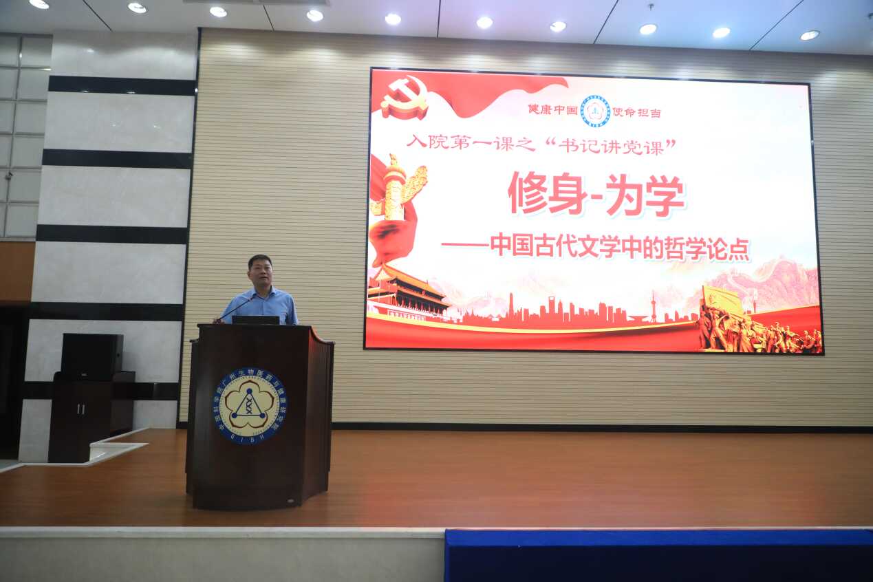 隨后黨委書記、副院長張鴻翔以“修身、為學(xué)——中國古代文學(xué)中的哲學(xué)論點”為題,為同學(xué)們講授“入院第一課”。他借中國古典文本中的智慧,深刻闡釋“修身”與“治學(xué)”之間的內(nèi)在聯(lián)系與哲學(xué)意涵,教導(dǎo)同學(xué)們汲取先賢哲思,涵養(yǎng)學(xué)術(shù)品格,堅定科學(xué)報國、科技強國的理想信念,努力成長為有理想、有本領(lǐng)的新時代優(yōu)秀青年。?
