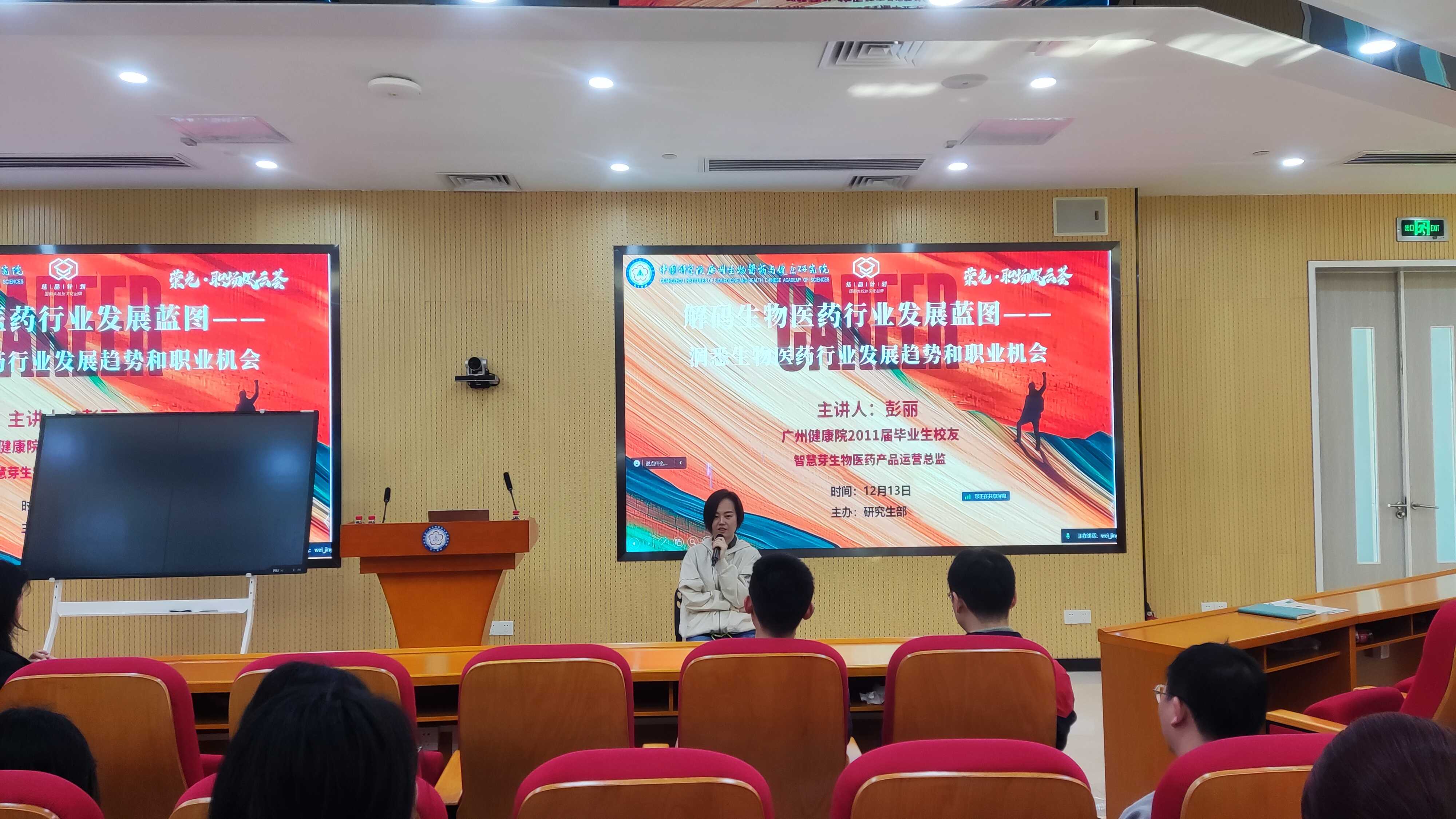 為助力研究生職業(yè)規(guī)劃,幫助研究生了解生物醫(yī)藥行業(yè)未來(lái)職業(yè)趨勢(shì)和職業(yè)機(jī)會(huì),12月13日,廣州健康院舉辦“解碼生物醫(yī)藥行業(yè)發(fā)展藍(lán)圖——洞悉生物醫(yī)藥行業(yè)發(fā)展趨勢(shì)和職業(yè)機(jī)會(huì)”專題交流會(huì),邀請(qǐng)2011屆畢業(yè)生校友彭麗來(lái)院與在學(xué)研究生座談交流。