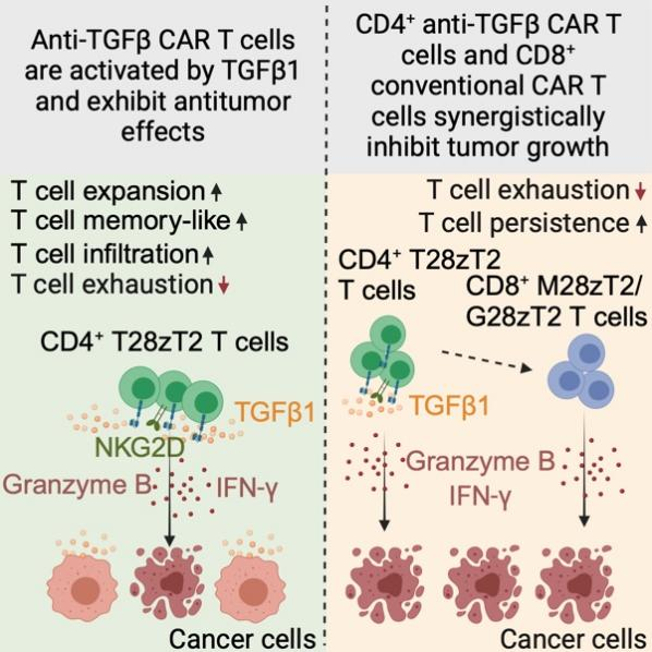 圖1?CD4+靶向TGFβ CAR-T細胞具備殺傷癌細胞和協(xié)同抗癌雙重作用
