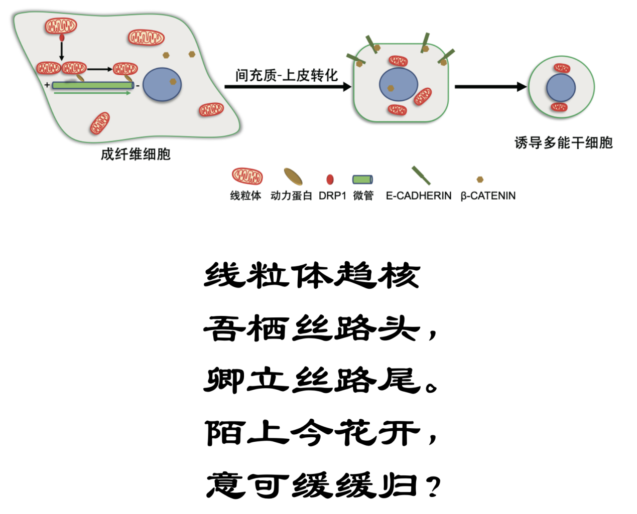 間充質(zhì)-上皮轉(zhuǎn)化(MET)和上皮-間充質(zhì)轉(zhuǎn)化(EMT)在胚胎發(fā)育、組織再生和癌癥轉(zhuǎn)移發(fā)揮作用,所以線粒體趨核調(diào)控MET具有廣泛的發(fā)育和病理意義。線粒體在細(xì)胞骨架上運動,與細(xì)胞核的關(guān)系,是“吾棲絲路頭,卿立絲路尾”,在多能性的情況下,讓線粒體“陌上花開,可緩緩歸矣”,趨核到細(xì)胞核的身邊。本研究發(fā)現(xiàn)了線粒體趨核調(diào)控MET的新機(jī)制,豐富了線粒體重塑調(diào)控多能性獲得的新功能,有望為線粒體重塑調(diào)控細(xì)胞命運的理論創(chuàng)新提供參考。