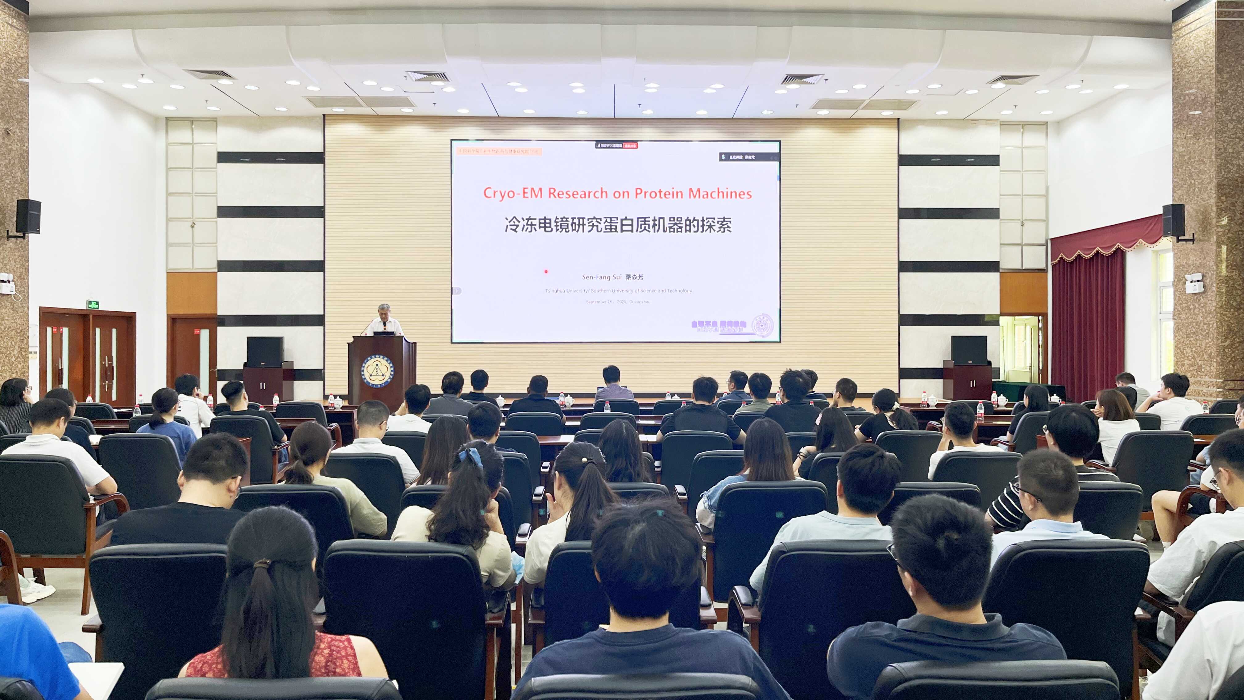 隋森芳院士以《冷凍電鏡研究蛋白質機器的探索》為題作報告。他結合自身數(shù)十年科研經歷,分享了幾點科研體會:選擇處于上升階段的學科、找準合適切入點并秉持堅持不懈的精神,為科研筑牢根基;持續(xù)跟進前沿,動態(tài)更新課題方向,助力在領域內實現(xiàn)突破。報告中,隋院士還系統(tǒng)解讀冷凍電鏡技術的核心價值,重點介紹單顆粒技術與冷凍電子斷層成像技術兩大核心技術,詳解其團隊創(chuàng)新性融合兩種技術,成功實現(xiàn)細胞切片中原位蛋白近原子分辨率解析,破解傳統(tǒng)技術“純化結構”與“原位功能”割裂問題的研究過程。同時,分享團隊在光合作用系統(tǒng)研究中的系列成果,尤其在“藻單體”研究中,借助冷凍電鏡揭示能量傳遞機制,發(fā)現(xiàn)骨架蛋白空間結構與色素分子微環(huán)境對能量傳遞方向的關鍵調控作用,為理解光合作用高效能量轉化原理提供直接結構證據(jù)。報告結束后,與會人員還圍繞科研方向選擇、冷凍電鏡樣品制備、學生培養(yǎng)等展開交流。