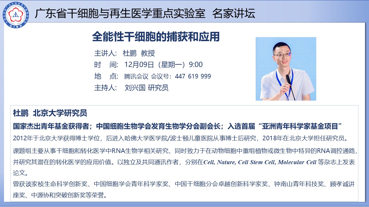 2024年12月9日廣東省干細(xì)胞與再生醫(yī)學(xué)重點(diǎn)實(shí)驗(yàn)室名家講壇:全能性干細(xì)胞的捕獲和應(yīng)用