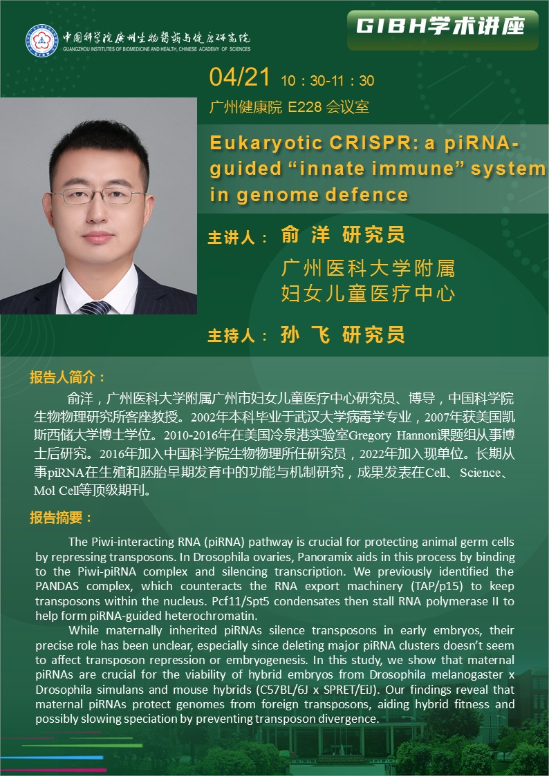 2025年4月21日學(xué)術(shù)講座:Eukaryotic CRISPR: a piRNA-guided “innate immune”system in genome defence