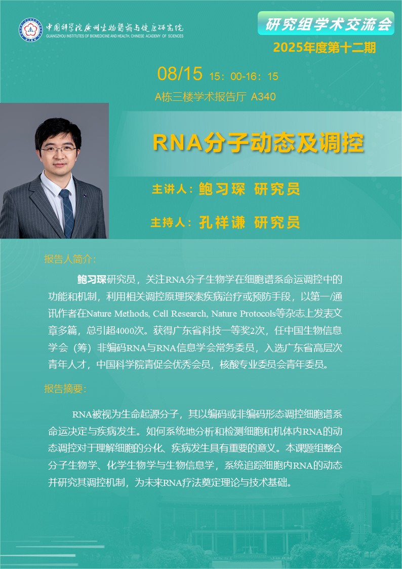 2025年8月15日研究組學(xué)術(shù)交流會(2025年度第十二期):RNA分子動態(tài)及調(diào)控